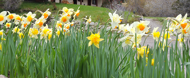 Enclavada entre los cerros, donde el césped ha alfombrado con su mullida tersura. Las flores son mas brillante y nacen por los senderos, rojas, moradas, violáceas. Contrastan aquí y allá con un lago de fuente azul que compite con el cielo.